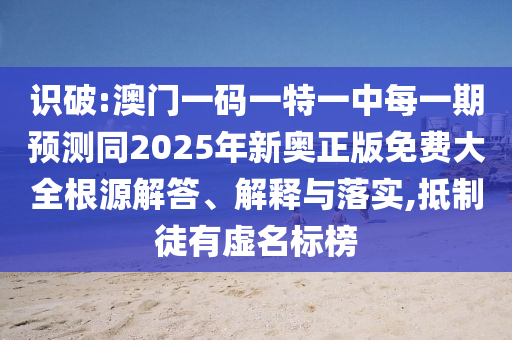 識破:澳門一碼一特一中每一期預測同2025年新奧正版免費大全根源解答、解釋與落實,抵制徒有虛名標榜