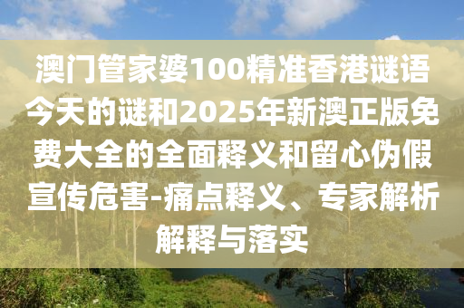 澳門管家婆100精準(zhǔn)香港謎語今天的謎和2025年新澳正版免費(fèi)大全的全面釋義和留心偽假宣傳危害-痛點(diǎn)釋義、專家解析解釋與落實(shí)