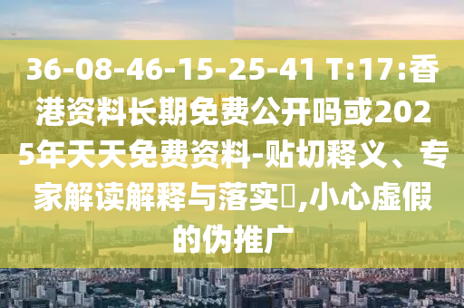 36-08-46-15-25-41 T:17:香港資料長期免費公開嗎或2025年天天免費資料-貼切釋義、專家解讀解釋與落實?,小心虛假的偽推廣