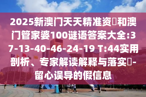 2025新澳門天天精準資枓和澳門管家婆100謎語答案大全:37-13-40-46-24-19 T:44實用剖析、專家解讀解釋與落實?-留心誤導的假信息